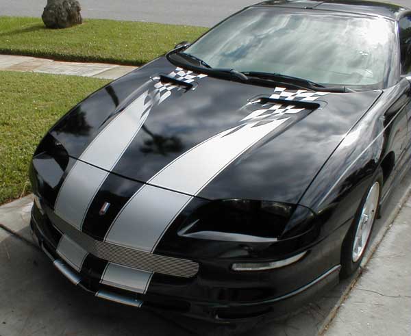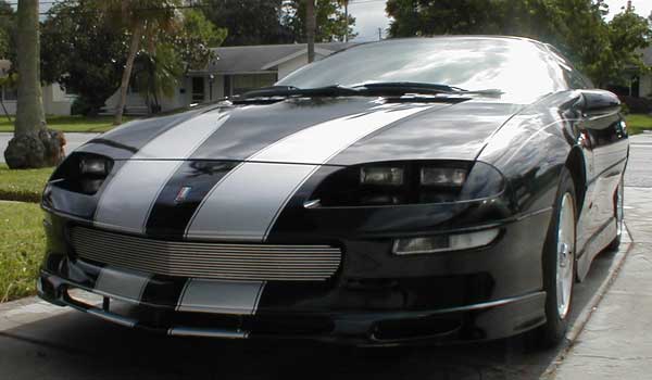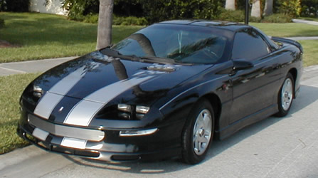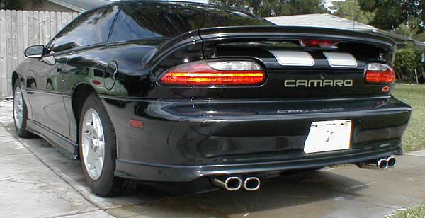 93-97 (Non?) SSPhotos courtesy Chris in Gainesville, FL.This kit is actually a 35th anniversary kit for an SS, put on a pre 98 Z28. It fits good and looks good, so the link on the bottom of this page will take you to the regular 35th anniversary SS page. I know it's confusing, so feel free to email me.Chris is the first to get silver for a black camaro. He did a very nice job on the install. This kit is $200 with free shipping and free CAMARO letter insert for the rear. --Jay |